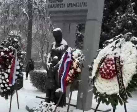 "It is interesting, because there is a documentation of the siege of Leningrad. And we have erected a monument to these fascists in Armenia...", says a man behind the scenes in Yerevan, kicking at the wreaths that have been laid at the monument.