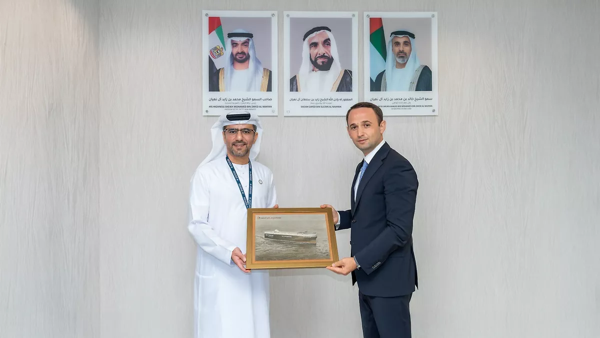 Azerbaijan Transport and Communications Holding (AZCON) Executive Director Shaheen Babaev and Abu Dhabi Ports Group (ADPC) CEO and Managing Director Mohamed Juma Al Shamisi explore expanded cooperation in transport and logistics.