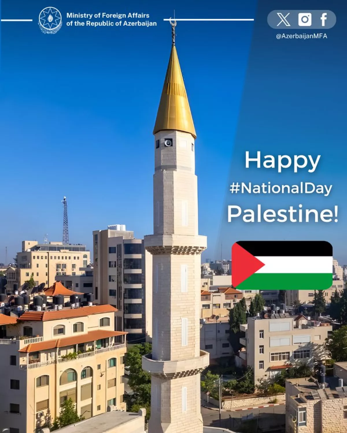 The Azerbaijani Foreign Ministry has extended its congratulations to Palestine on the occasion of its National Day.