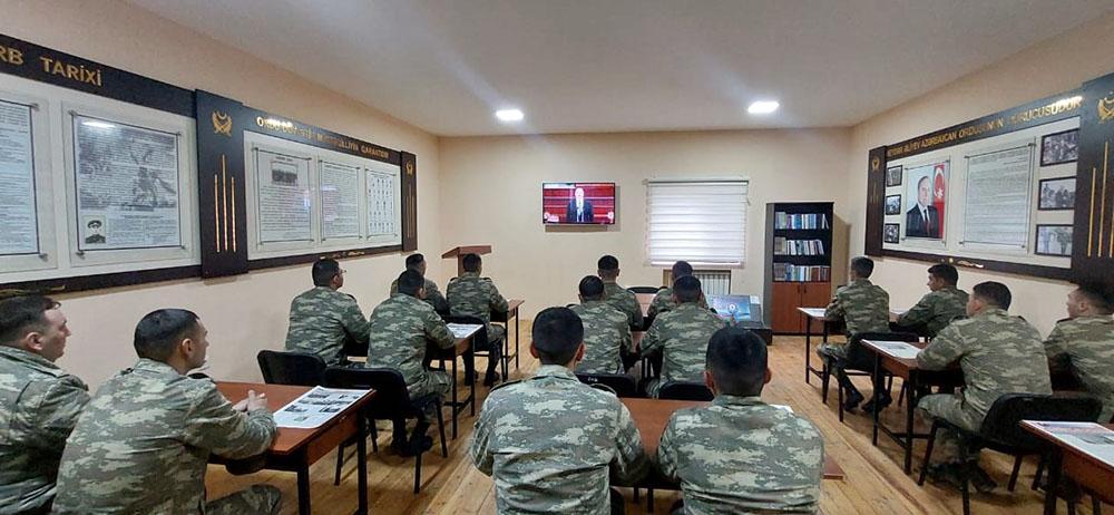 The speech of President of the Republic of Azerbaijan, Supreme Commander-in-Chief of the Armed Forces Ilham Aliyev at the inauguration ceremony in the Azerbaijani parliament was demonstrated at the socio-political training classes held by Minister of Defence, Colonel General Zakir Hasanov in military units, the Azerbaijani Defence Ministry told Caliber.Az.