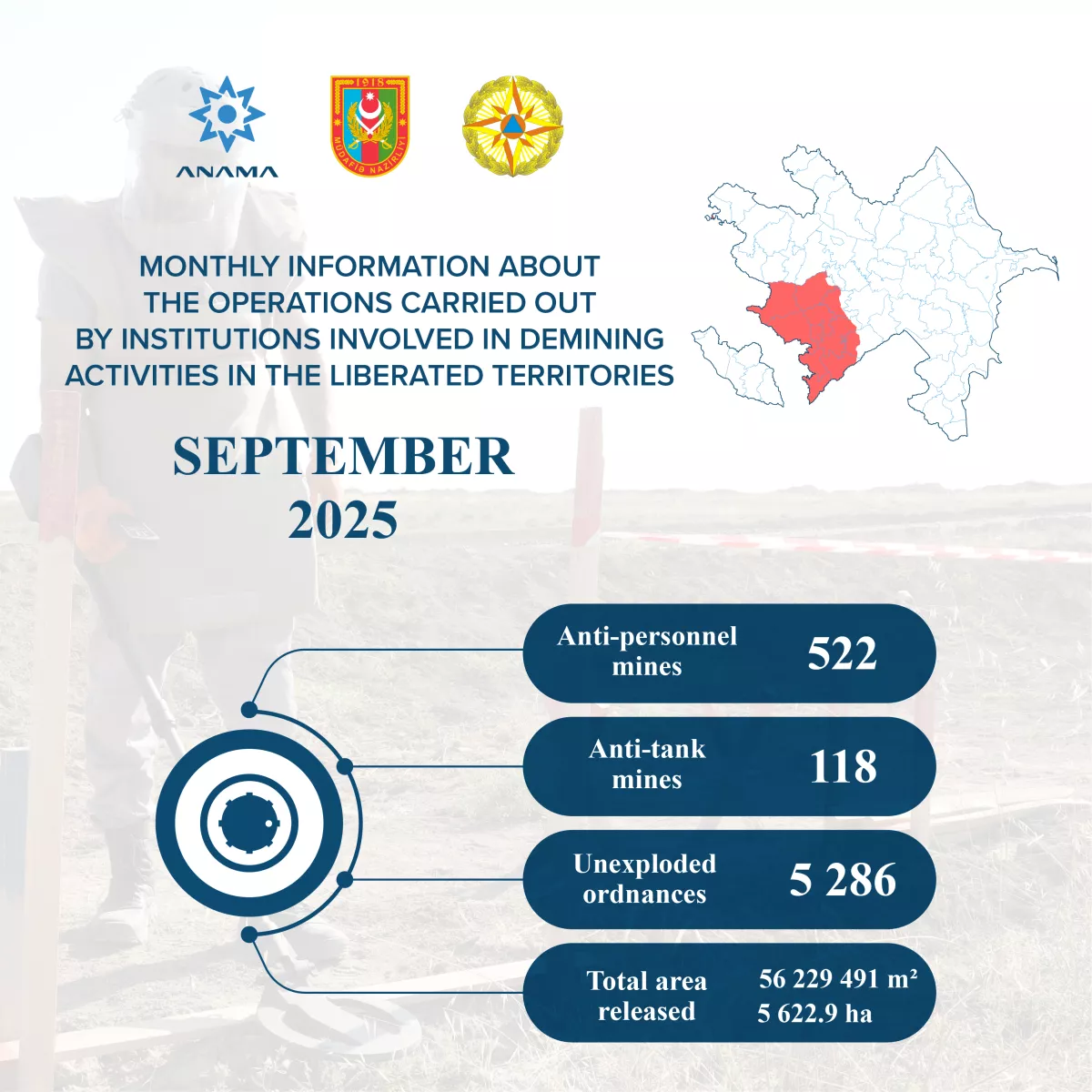 The Azerbaijan National Agency for Mine Action (ANAMA) has published its monthly demining report for territories in Karabakh.