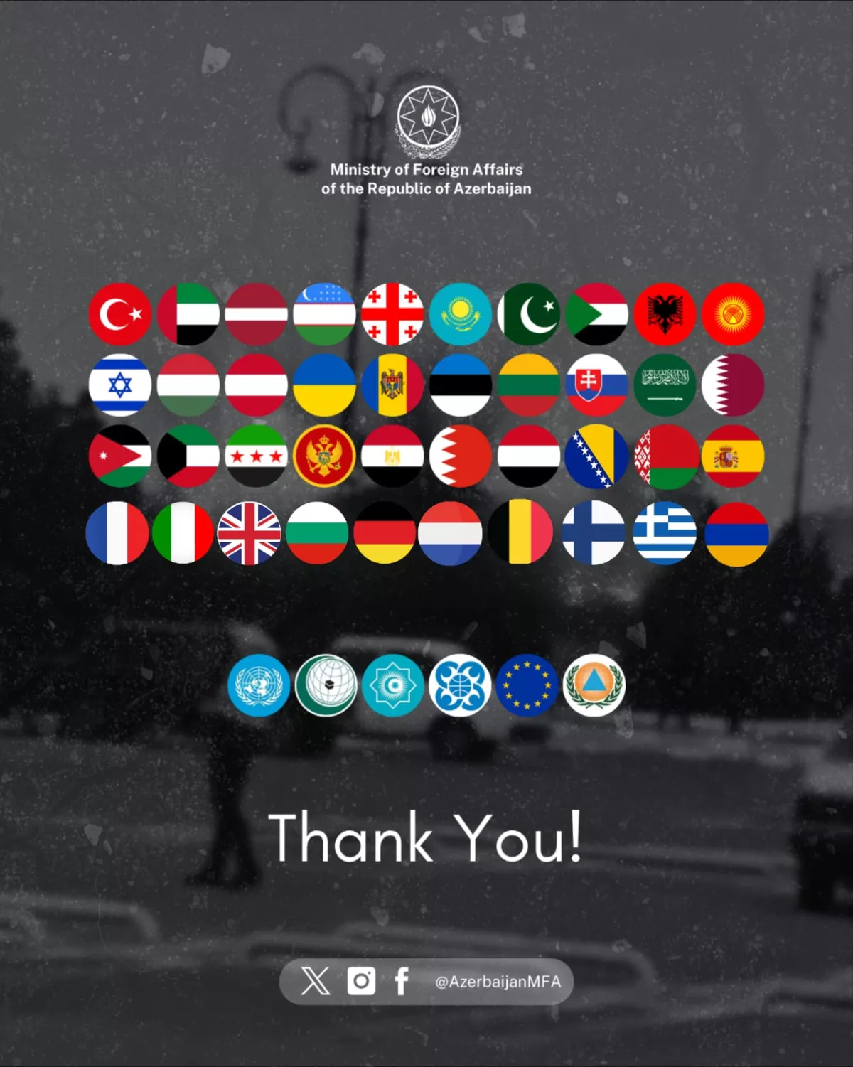 “We express our sincere gratitude for the statements of support, letters, and phone calls received from our international partners following the Iranian drone strikes against the territory of the Republic of Azerbaijan.