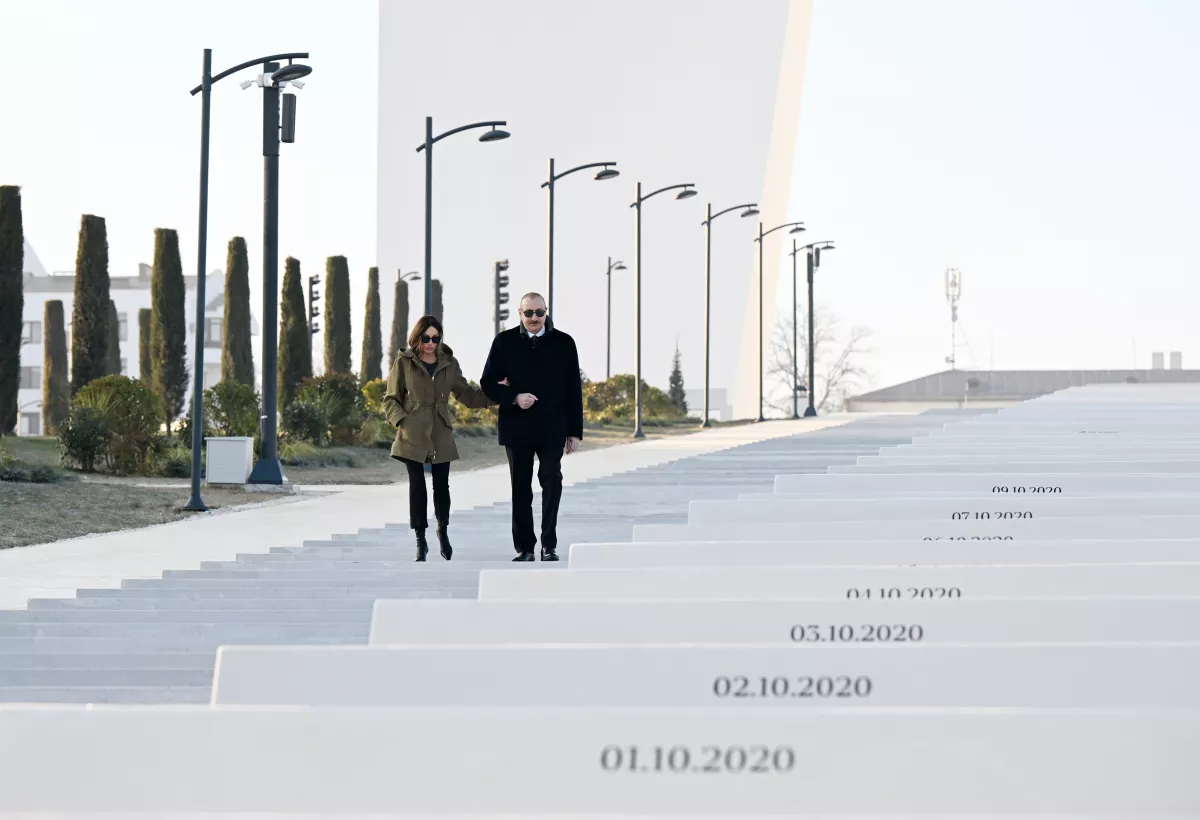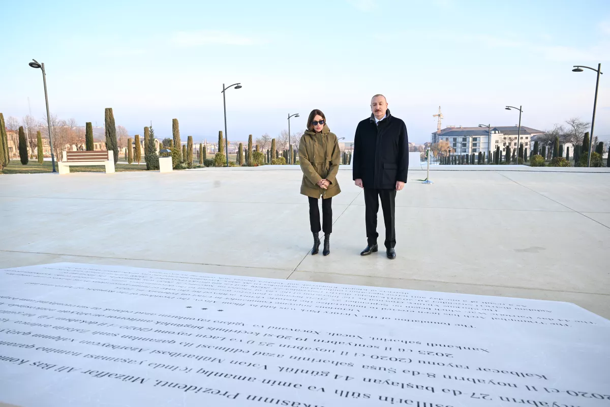 Azerbaijani President Ilham Aliyev and First Lady Mehriban Aliyeva participated in the opening ceremony of Victory Park in the city of Khankendi on December 24.