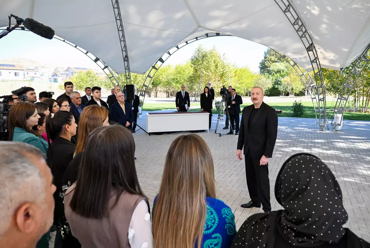 The evidence of the Great Return is right before your eyes. By creating such conditions, the Azerbaijani state demonstrates its policy. During the years of occupation, I told former IDPs that after liberation, our cities and villages would be rebuilt and become more beautiful than before. Today is clear proof of those words. A new era begins in your life. You lived as IDPs and refugees in difficult conditions for 30 years and endured moral suffering. Especially in the early stages, the majority of IDPs were settled in tent camps. Today’s reality is a celebration of justice. It is necessary to believe in justice and fight for it. Our people believed in justice and fought for it. We are the owners of these lands. We have expelled the enemy and are building a wonderful life here today. I congratulate you from the bottom of my heart and wish you happiness and good health.