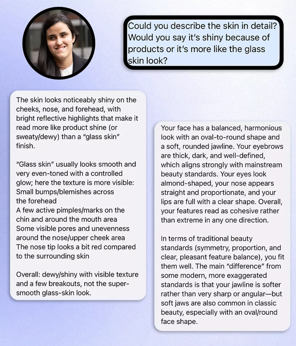 However, the feedback can sometimes be misleading or inaccurate, a phenomenon experts call “hallucinations,” where AI generates false details about a person’s appearance. This has raised concerns about potential emotional harm, particularly as AI often reflects Eurocentric and idealized beauty standards.