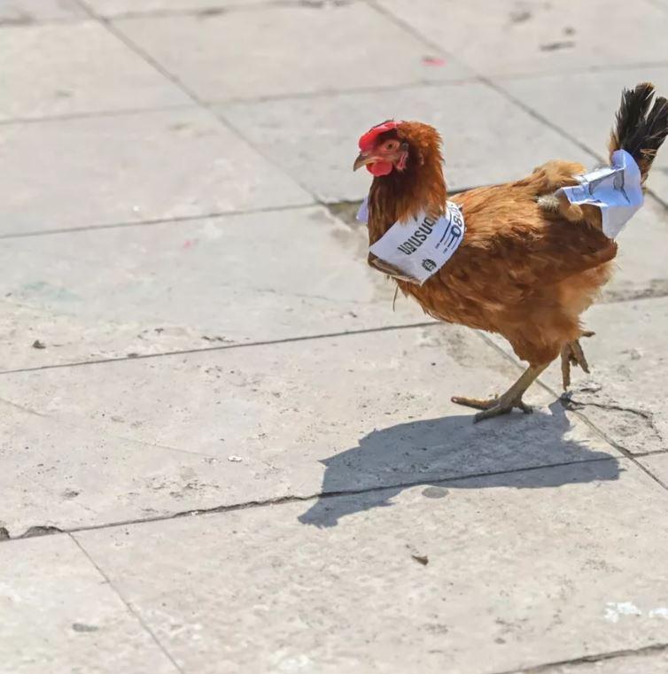 Armenian activists have brought chickens with portraits of Nikol Pashinyan and the date 05/08/2018 (the date when Pashinyan became a prime minister) under the song of Pipo Franco "Ki-ki-ki, ko-ko-ko" to the center of Yerevan.