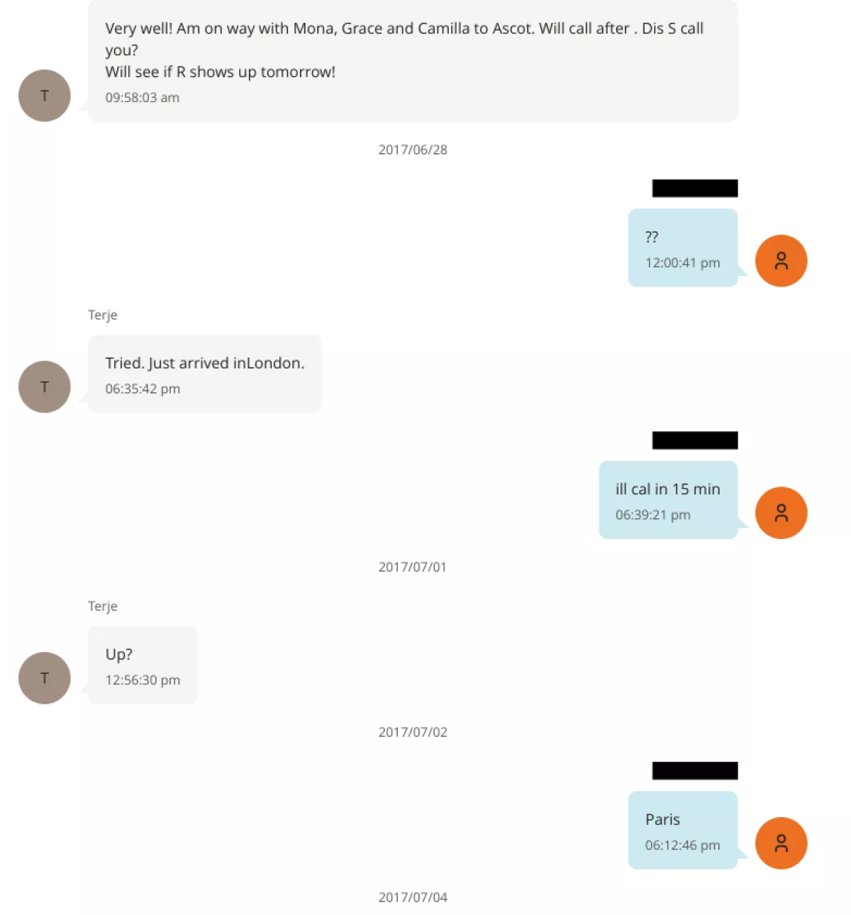 Correspondence from June 2017 illustrates the depth of the closeness. On June 23, Mona’s husband wrote to Epstein via iMessage: “Very well! Am on my way with Mona, Grace and Camilla to Ascot. Will call after.”