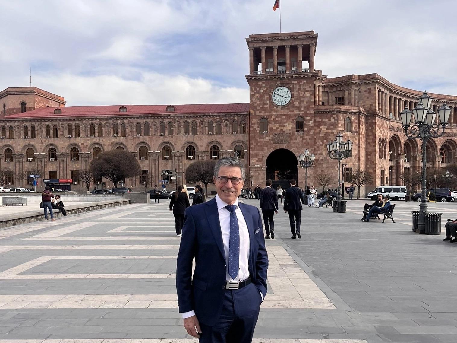 He came in his capacity as the head of Rasmussen Global, a consulting firm that has lately been closely working with Ukraine on a plan for Western security guarantees there. He said he came on the invitation of the Armenian government but did not elaborate.