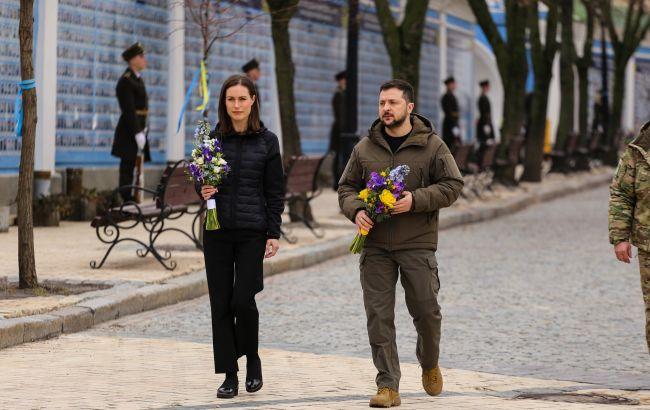 In particular, Volodymyr Zelenskyy and Sanna Marin together paid tribute to the memory of the deceased Hero of Ukraine Dmytro Kotsyubaylo "Da Vinci", who is being bid farewell to in Kyiv on March 10.
