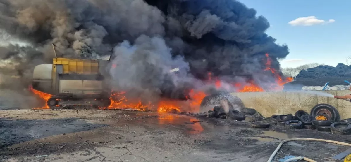 The fire was reported at 16:45 local time. A tyre shredding machine and stored rubber materials caught fire, affecting an area of around 300 square metres.
