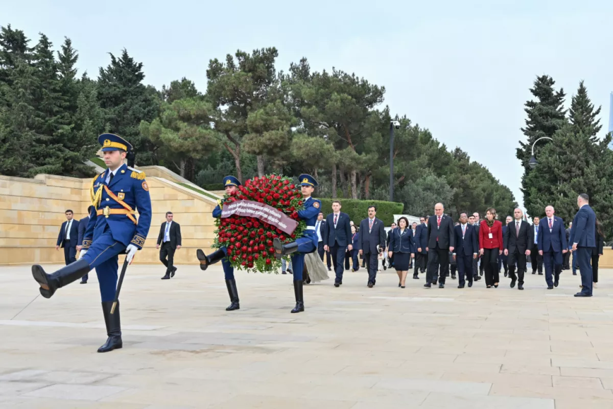 Speaker of Azerbajan's Parliament Sahiba Gafarova, Chairman of the Senate of Pakistan Syed Yusuf Raza Gilani, Speaker of the Supreme Assembly of Tajikistan Faizali Idizoda, President of the Romanian Senate Mircea Abrudeanu, as well as heads and members of parliamentary delegations from other countries and representatives of international organisations, first arrived at the Alley of Honor. There, paying tribute to the memory of the national leader of the Azerbaijani people — the architect and founder of the modern independent Azerbaijani state, Heydar Aliyev — they laid a wreath at his grave.