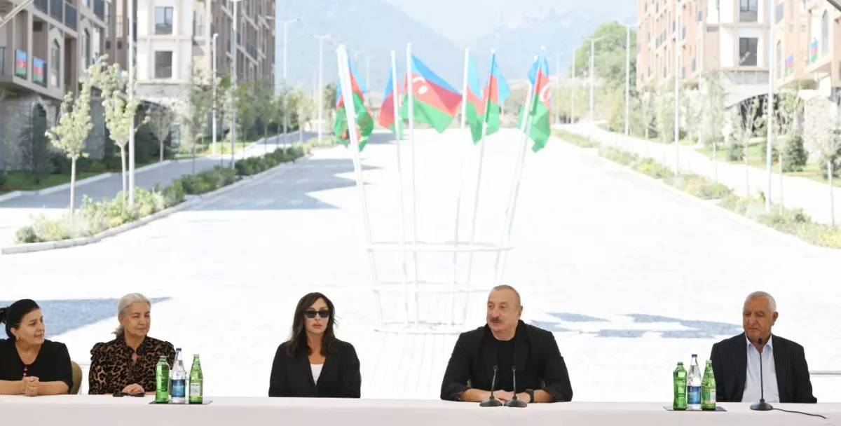 Presenting apartment keys to returning residents, President Aliyev said: “Kalbajar is one of the most beautiful districts in our country [...] Our meeting around these beautiful buildings today is also greatly symbolic. They destroyed this place, but we built it.”