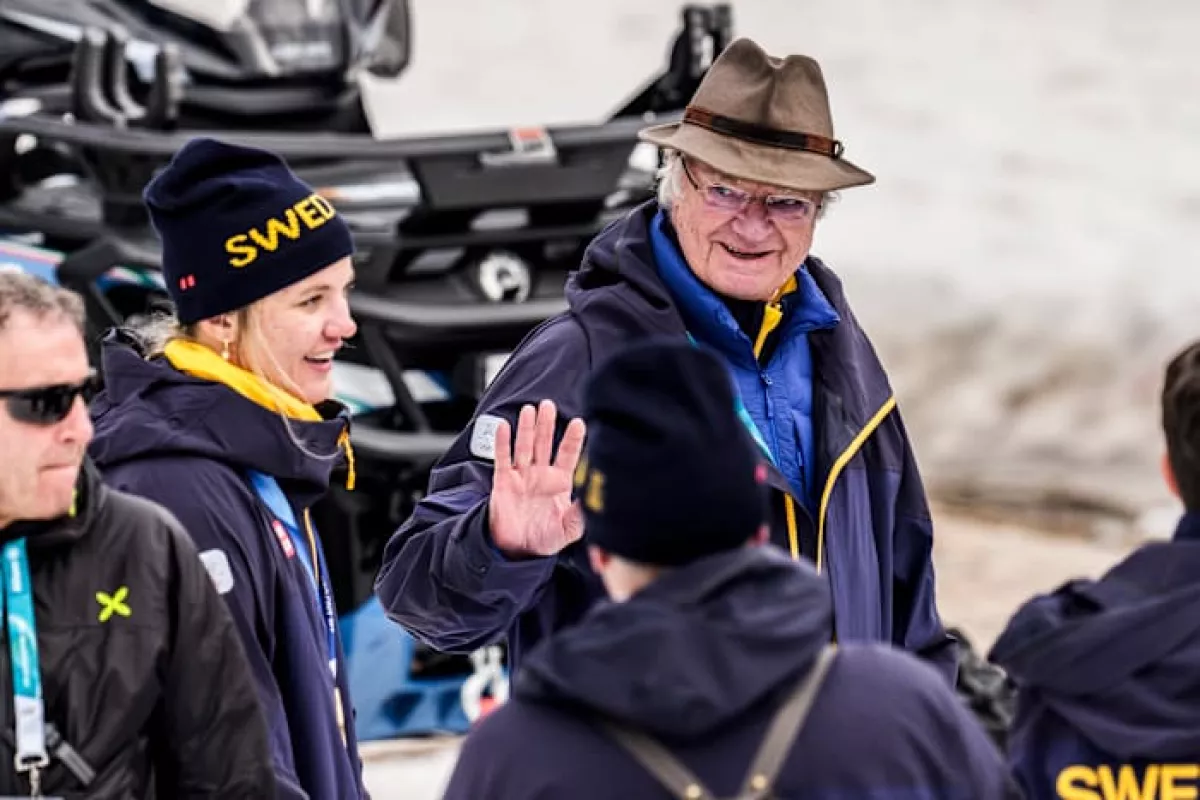 King Carl cheers up Sweden’s disappointed skiers after Olympic silver