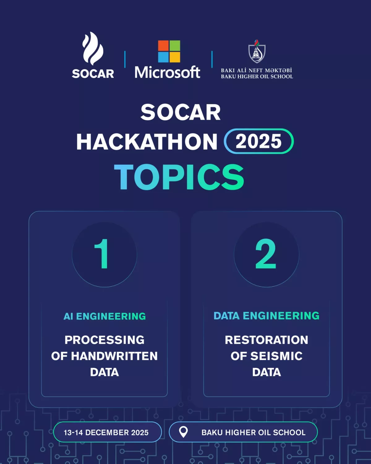 Global technology giant Microsoft has officially joined SOCAR Hackathon 2025 as a key partner, the State Oil Company of Azerbaijan (SOCAR) announced.
