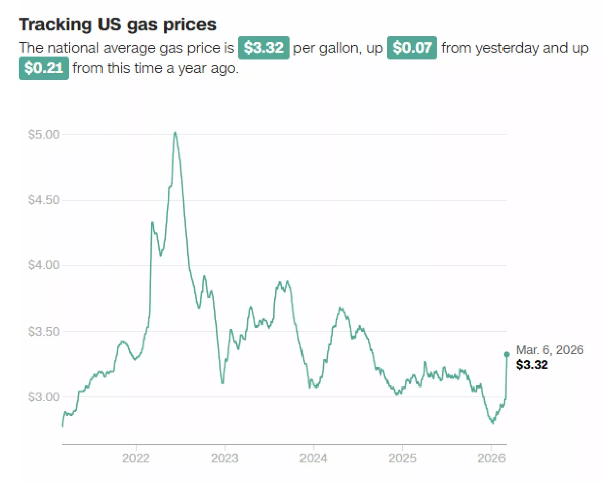 According to the American Automobile Association (AAA), the national average for regular gasoline rose another seven cents on March 6, reaching $3.32 per gallon. This marks the highest average price of either of Trump’s two terms in the White House. The previous peak during his presidency was $3.27 per gallon on April 4, 2025.