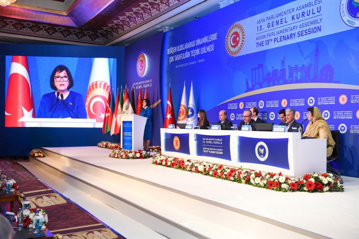 APA reports that Gafarova addressed a number of historical facts in her speech at the 13th plenary session of the Asian Parliamentary Assembly.