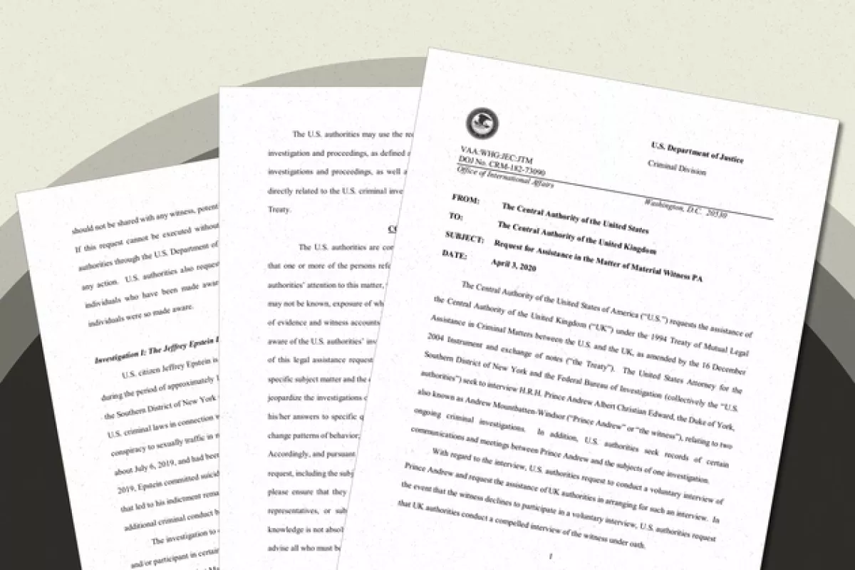 A request from US authorities to UK officials in April 2020 sought to compel an interview with Prince Andrew, stating they had evidence that Mountbatten-Windsor “was present” for “certain” interactions between a victim, Epstein and Maxwell, and of “documentary” evidence that Andrew “had knowledge” that Maxwell “recruited females to engage in sex acts with Epstein and other men.”