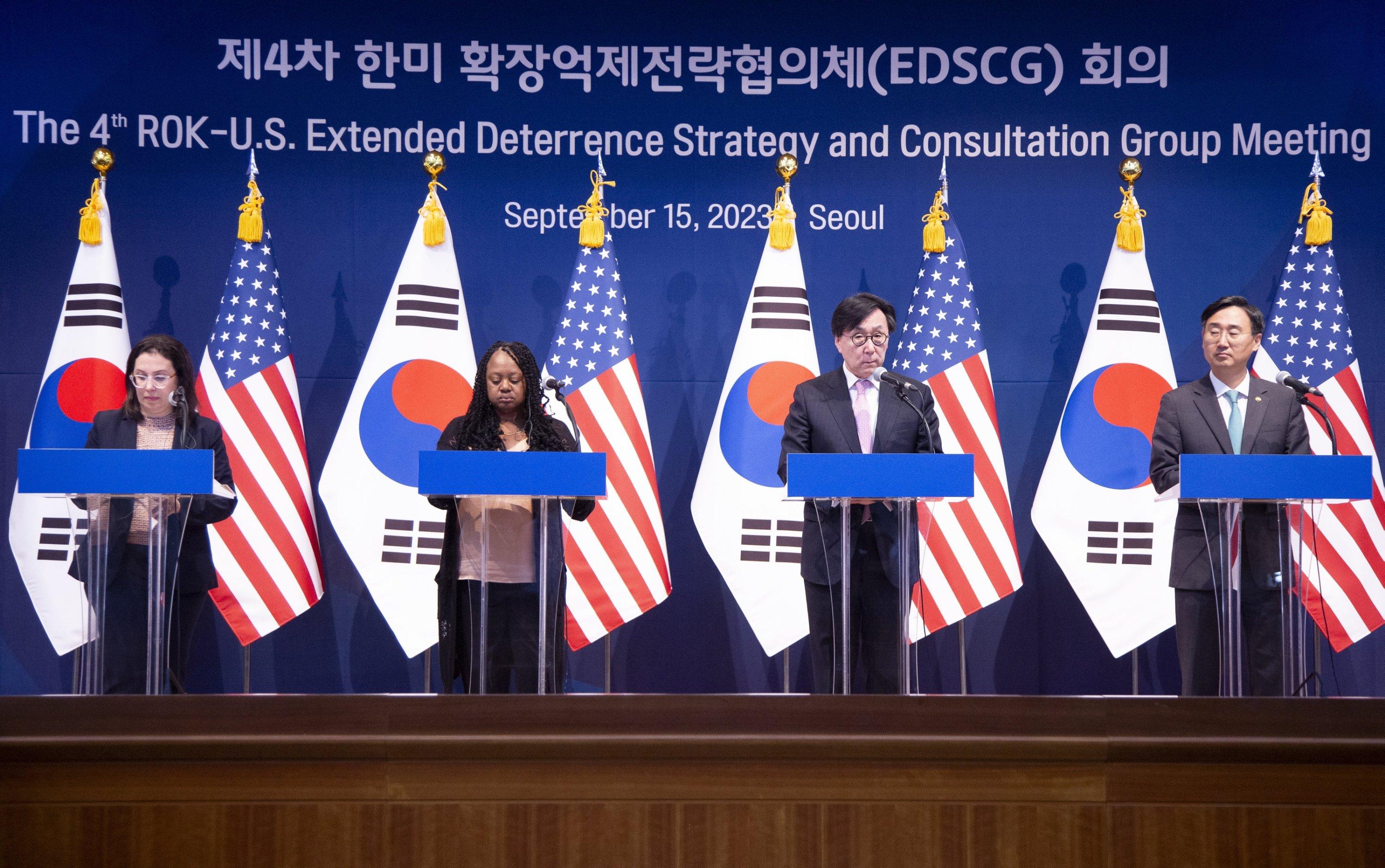 The fourth session of the Extended Deterrence Strategy and Consultation Group (EDSCG), which brings together deputy defense officials and diplomats from allied countries, convened at Seoul's Foreign Ministry amidst worries that North Korea and Russia might have deliberated on a potential arms transaction during their recent summit, Seoul-based Yonhap News reported.