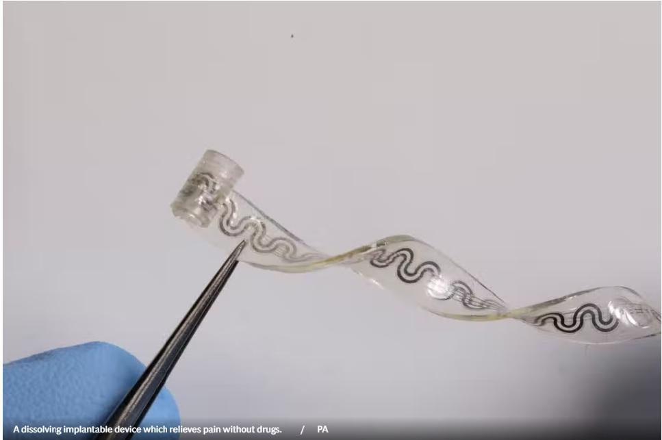 Scientists have developed a small, soft, flexible implant that relieves pain on demand without the use of drugs.