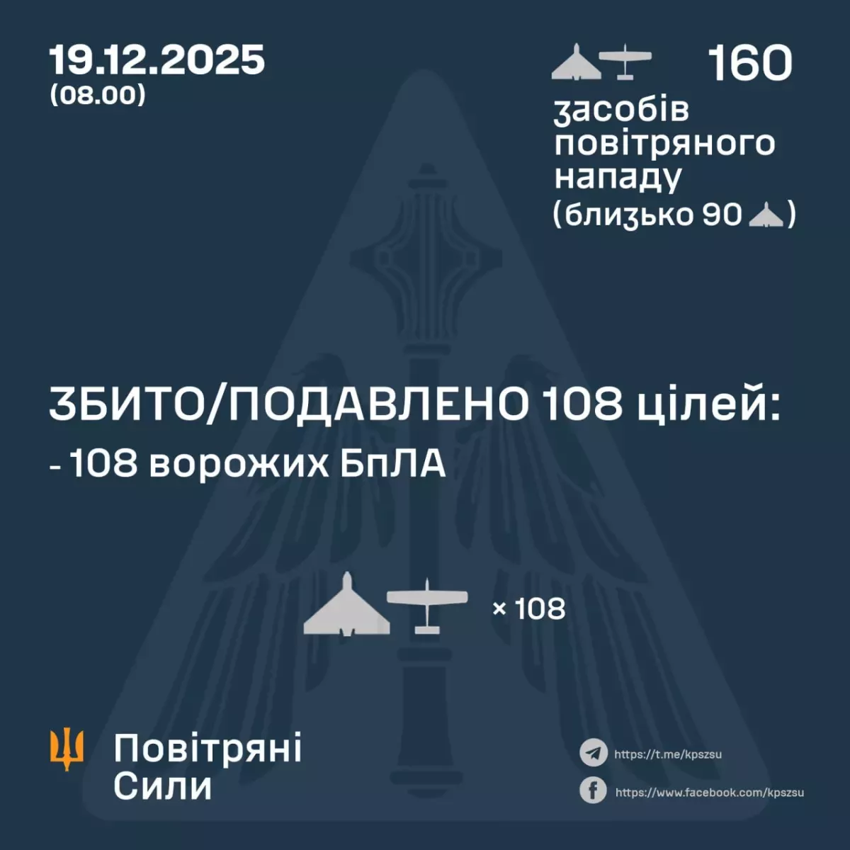 According to the Ukrainian Air Forces, Russian forces launched 160 strike drones overnight, including around 90 Shahed drones.