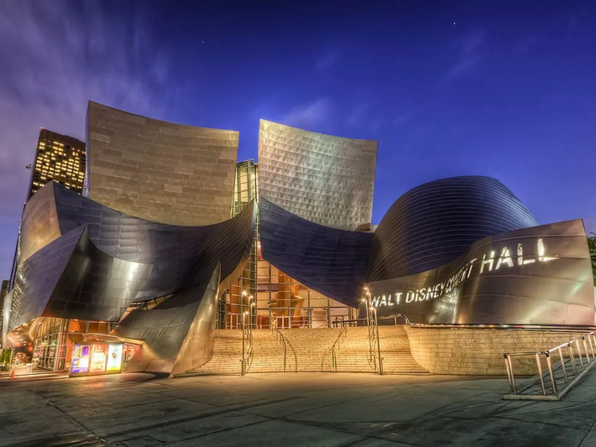 Gehry’s passion for sailing can be seen in the building’s wind-swept metallic forms, which appear as if frozen mid-motion. The concert hall has become a defining cultural landmark for Los Angeles.