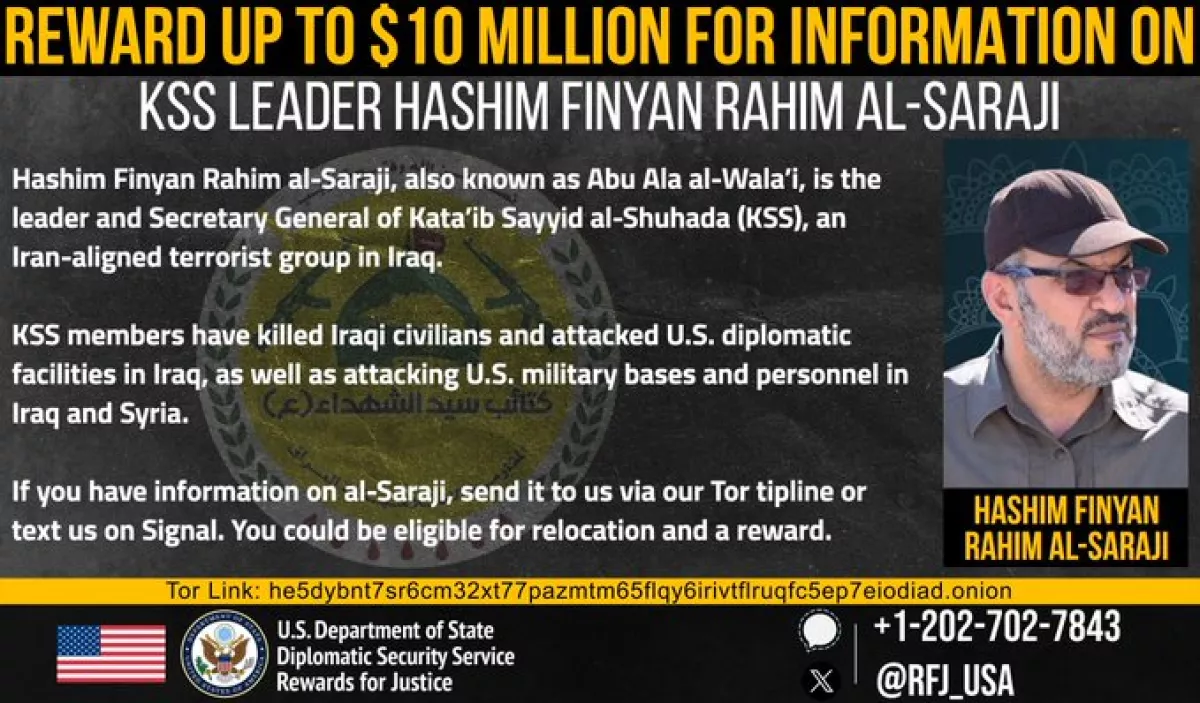 The United States has announced a reward of $10 million for information on the leader of the Iraqi Shiite militia group Kataib Sayyid al-Shuhada, which is backed by Iran.