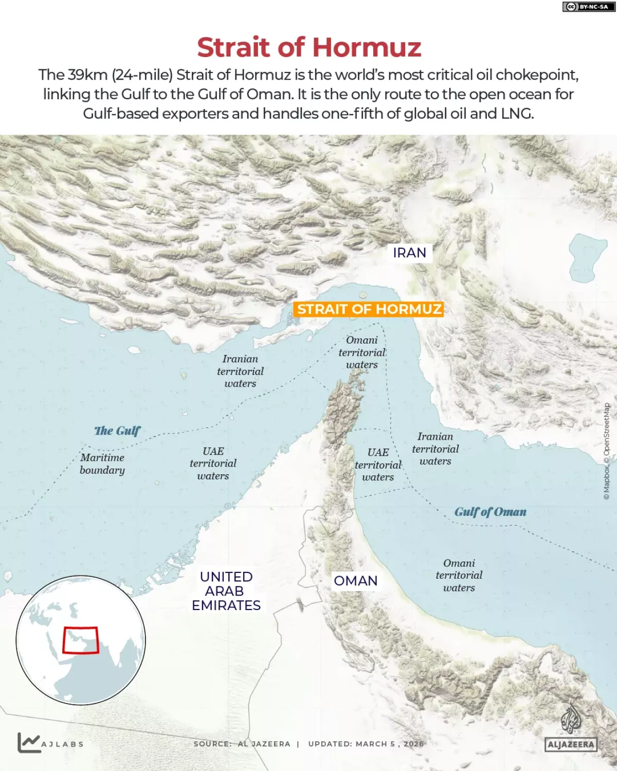 Iran has not confirmed deploying mines but has publicly warned that the strait is “closed” to hostile vessels while allowing selected traffic.