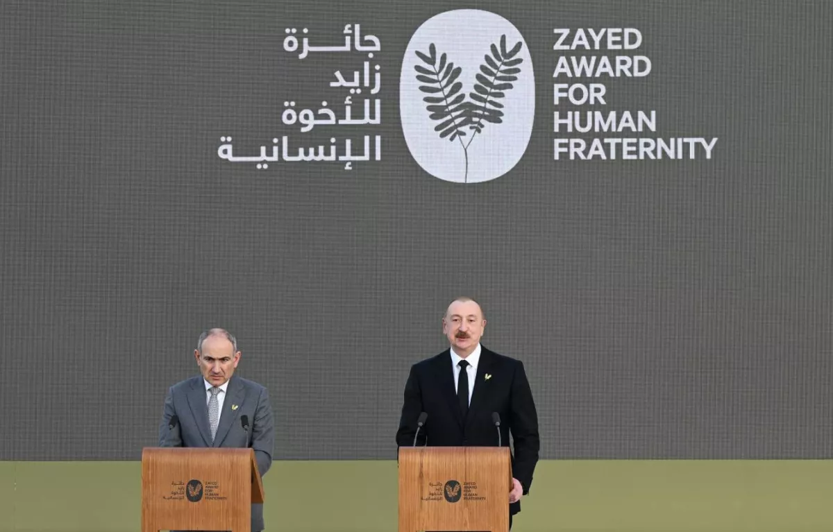 Azerbaijan’s President Ilham Aliyev and Armenia’s Prime Minister Nikol Pashinyan were awarded the “Zayed Award for Human Fraternity.” Video from Abu Dhabi.