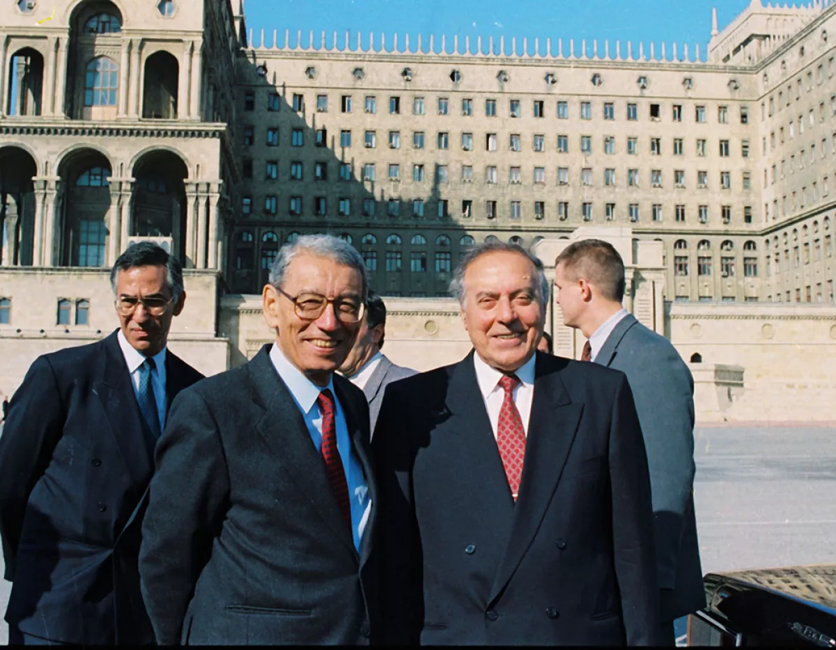 Тогда же формировалась энергетическая стратегия. Россия пыталась сорвать будущий «Контракт века», утверждая, что в Азербайджане «нет таких запасов» и что статус Каспия «не определён». Но договор был подписан. А затем — решение по Баку–Тбилиси–Джейхан. Россия была против, но международный консорциум принял маршрут. И Гасанов отмечает, что автором данной стратегии был Гейдар Алиев.