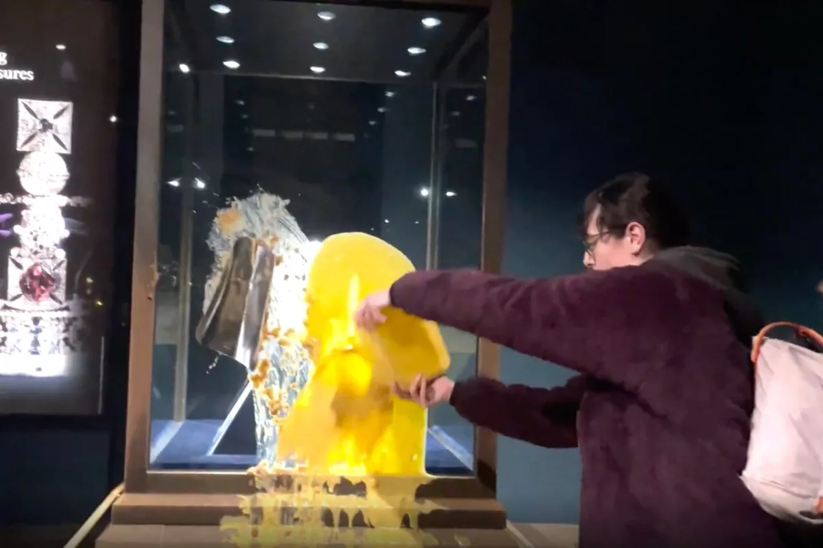 Активисты швырнули пирог и заварной крем в витрину с короной в Тауэре ВИДЕО
