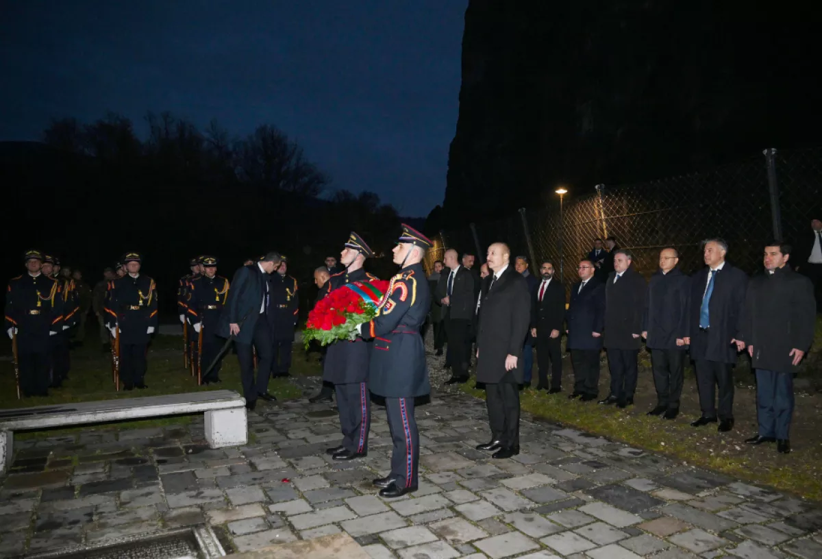 Президент Ильхам Алиев и президент Петер Пеллегрини возложили венок к памятнику.