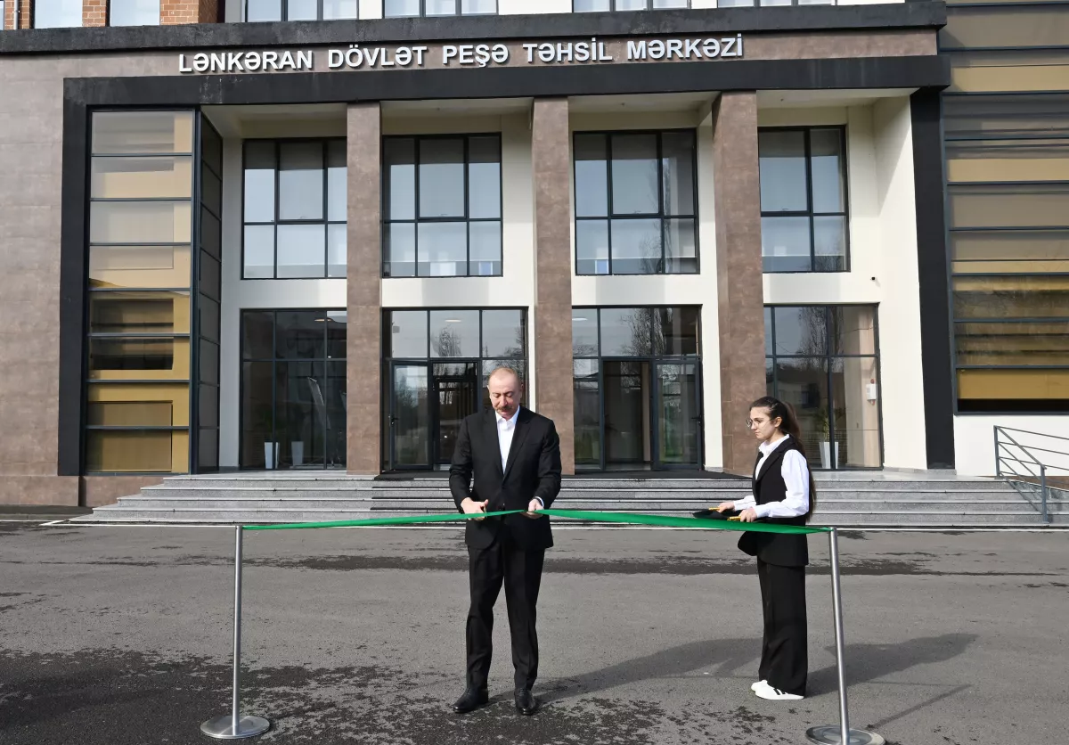 25 февраля состоялось открытие Лянкяранского государственного центра профессионального образования. Президент Азербайджанской Республики Ильхам Алиев принял участие в церемонии открытия.