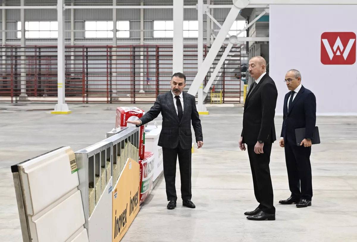 Президент Азербайджанской Республики Ильхам Алиев принял участие в открытии завода по производству минеральной каменной ваты AZWOOL компании Matanat-A в Гарадагском районе Баку.