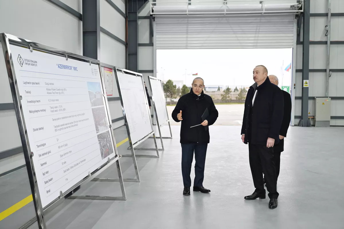 27 января президент Азербайджана Ильхам Алиев принял участие в открытии завода по производству зеркальных листов ООО Azermirror в Сумгайытском промышленном парке.