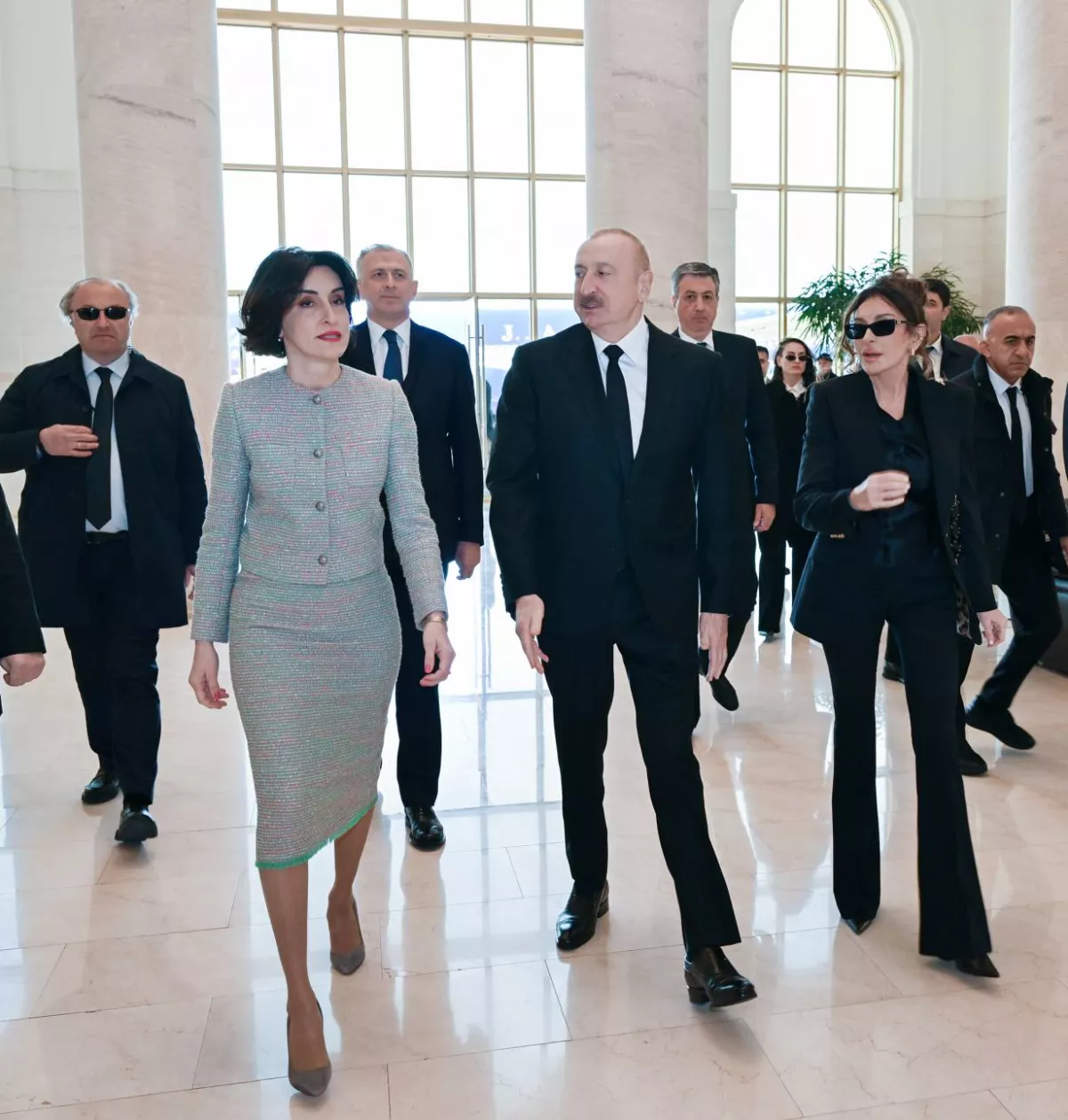 В Международном аэропорту Шота Руставели в Тбилиси в честь Ильхама Алиева выстроился почетный караул. Ильхама Алиева и первую леди Мехрибан Алиеву встретили министр иностранных дел Грузии Мака Бочоришвили и другие официальные лица.