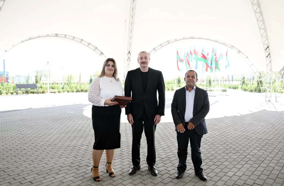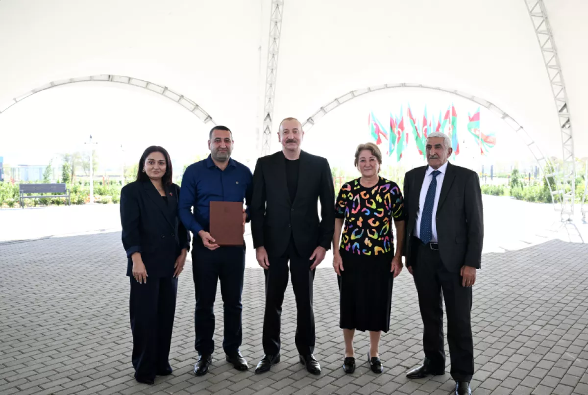 Ильхам Алиев вручил жителям сел ключи от квартир.