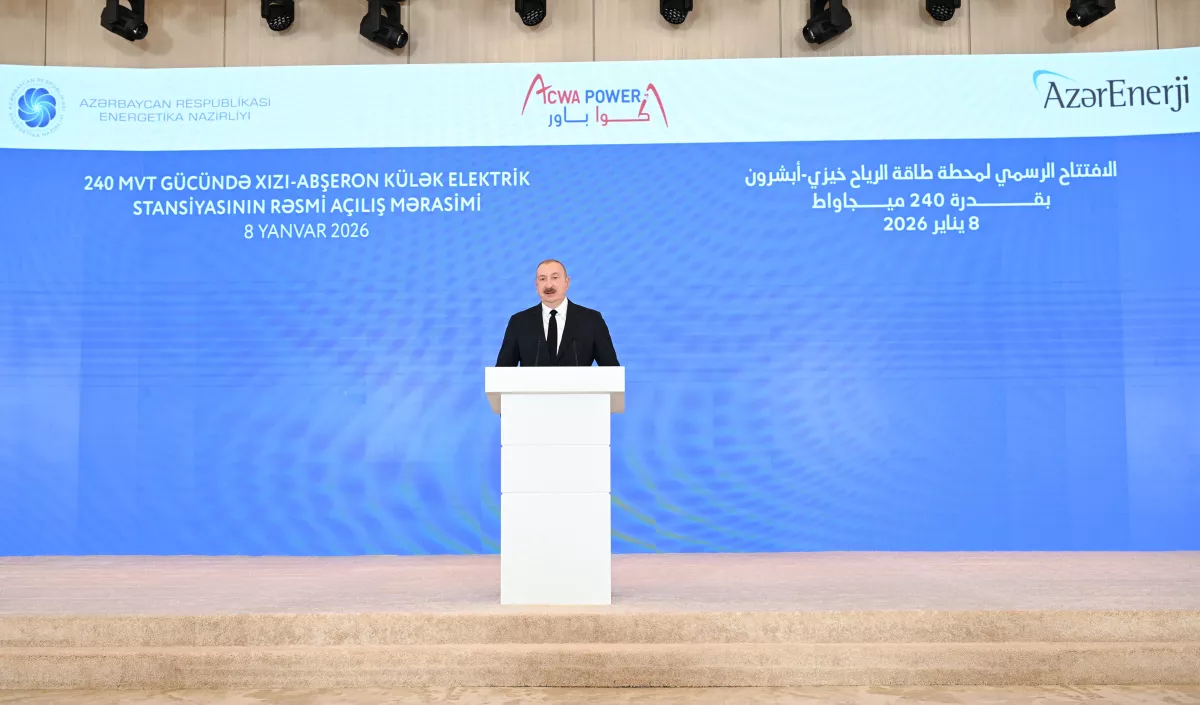 Сегодня в Баку, во дворце «Гюлистан» состоялась официальная церемония открытия ветряной электростанции «Хызы-Абшерон» мощностью 240 МВт, построенной компанией ACWA Power (Саудовская Аравия). На мероприятии выступил президент Азербайджанской Республики Ильхам Алиев.