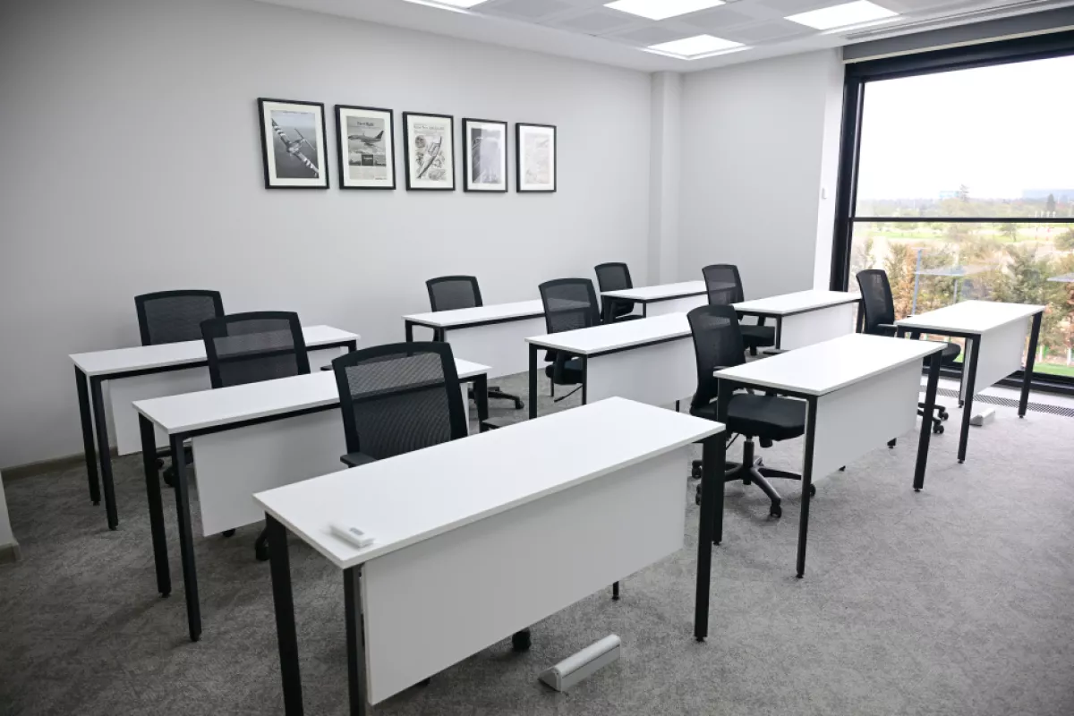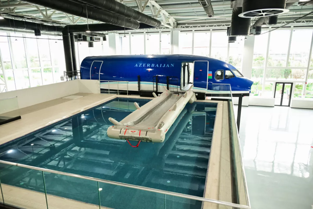Здесь установлен симулятор вышки управления (TWR) с панорамным обзором Международного аэропорта Гейдар Алиев на 360 градусов, а также комплекс радарных симуляторов для управления воздушным пространством. Эти системы позволяют готовить диспетчеров в реальных операционных условиях.