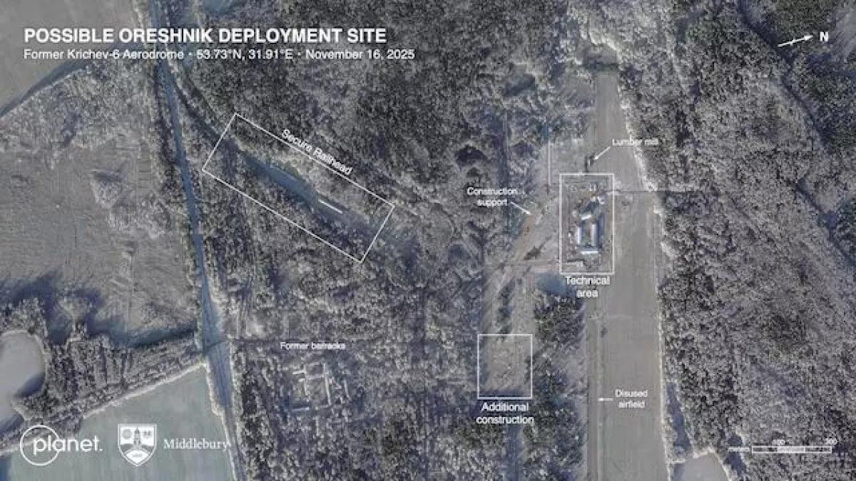 По оценкам аналитиков, с вероятностью около 90% именно на этой площадке готовятся позиции для мобильных пусковых установок комплекса «Орешник». Спутниковые данные указывают на ускоренное строительство инфраструктуры, характерной для стратегической ракетной базы, включая защищённые железнодорожные объекты для транспортировки ракет, а также замаскированные пусковые площадки.