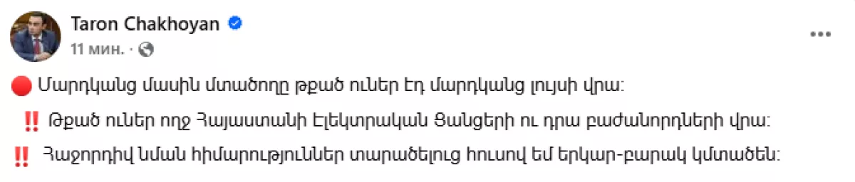 Заместитель руководителя аппарата премьер-министра Армении Тарон Чахоян отреагировал на недавние заявления в адрес властей страны, назвав их «чушью» и заявив, что такие высказывания наносят ущерб людям.