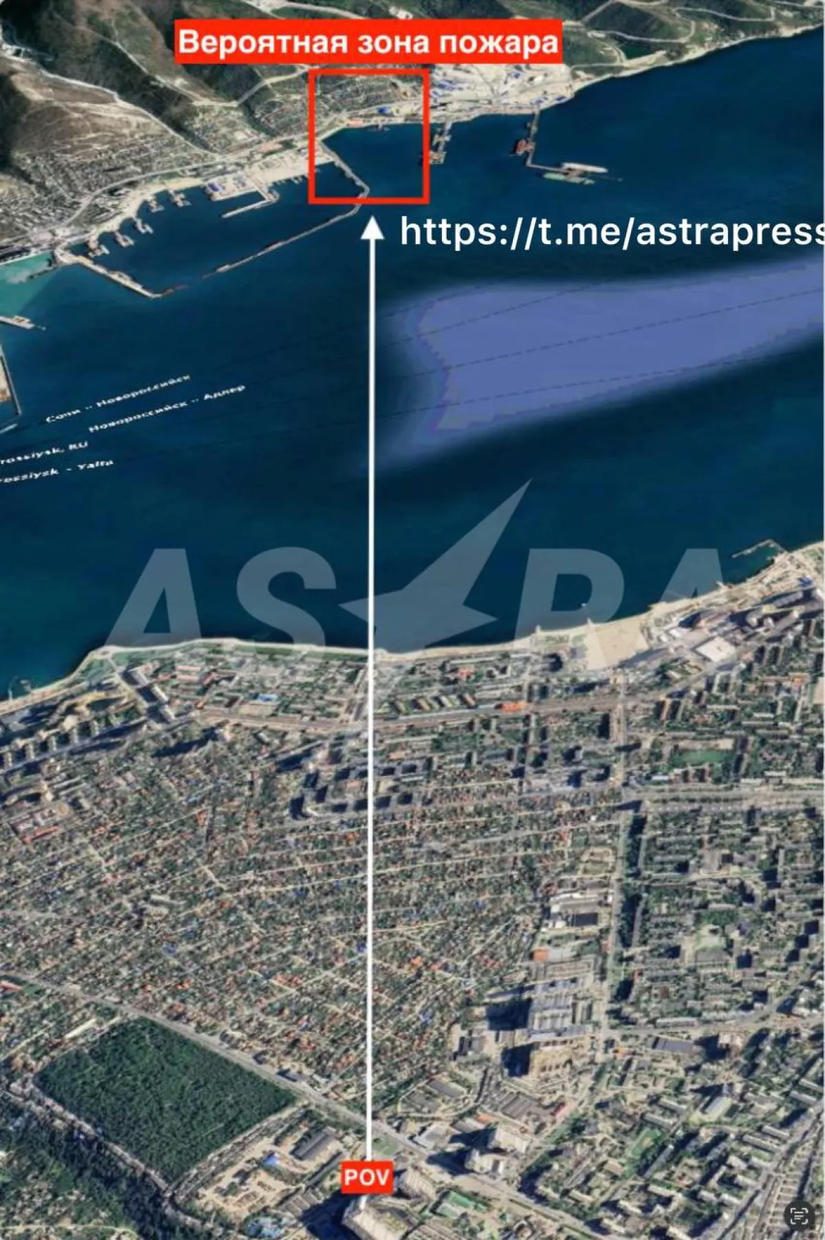 ASTRA проанализировала кадры очевидцев, зафиксировавшие пожары в результате атак в Новороссийске. Согласно нашему анализу видео, которое было опубликованно в украинском канале Exilenova Plus, в вероятной зоне пожара расположен Нефтеналивной терминал Шесхарис.