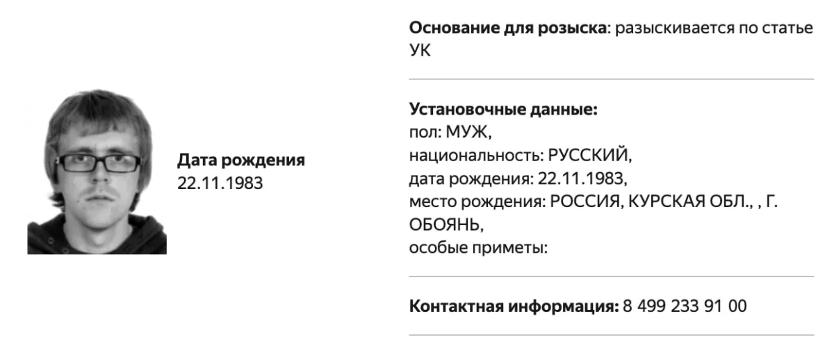 Соответствующая карточка розыска опубликована на сайте МВД, обратила внимание «Медиазона». Он разыскивается по неназванной статье уголовного кодекса.