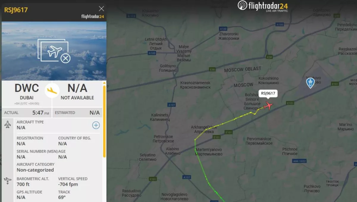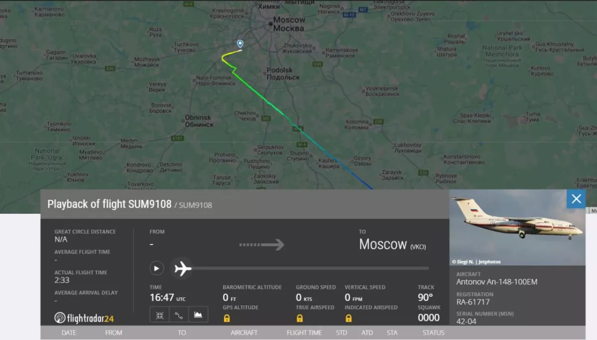 «Самолет-госпиталь» Ан-148-100-ЕМ МЧС России, который вылетел сегодня из Грозного после сообщений о ДТП с участием сына Рамзана Кадырова, Адама, приземлился в московском аэропорту Внуково в 01:10, следует из данных FlightRadar, обратили внимание «Важные истории».