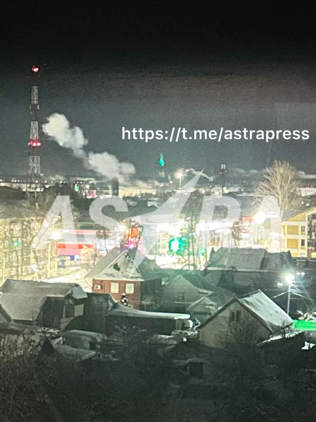 «Фото снято с улицы Лермонтова, расстояние от точки съемки до места пожара — 200 метров», — пишет ASTRA.