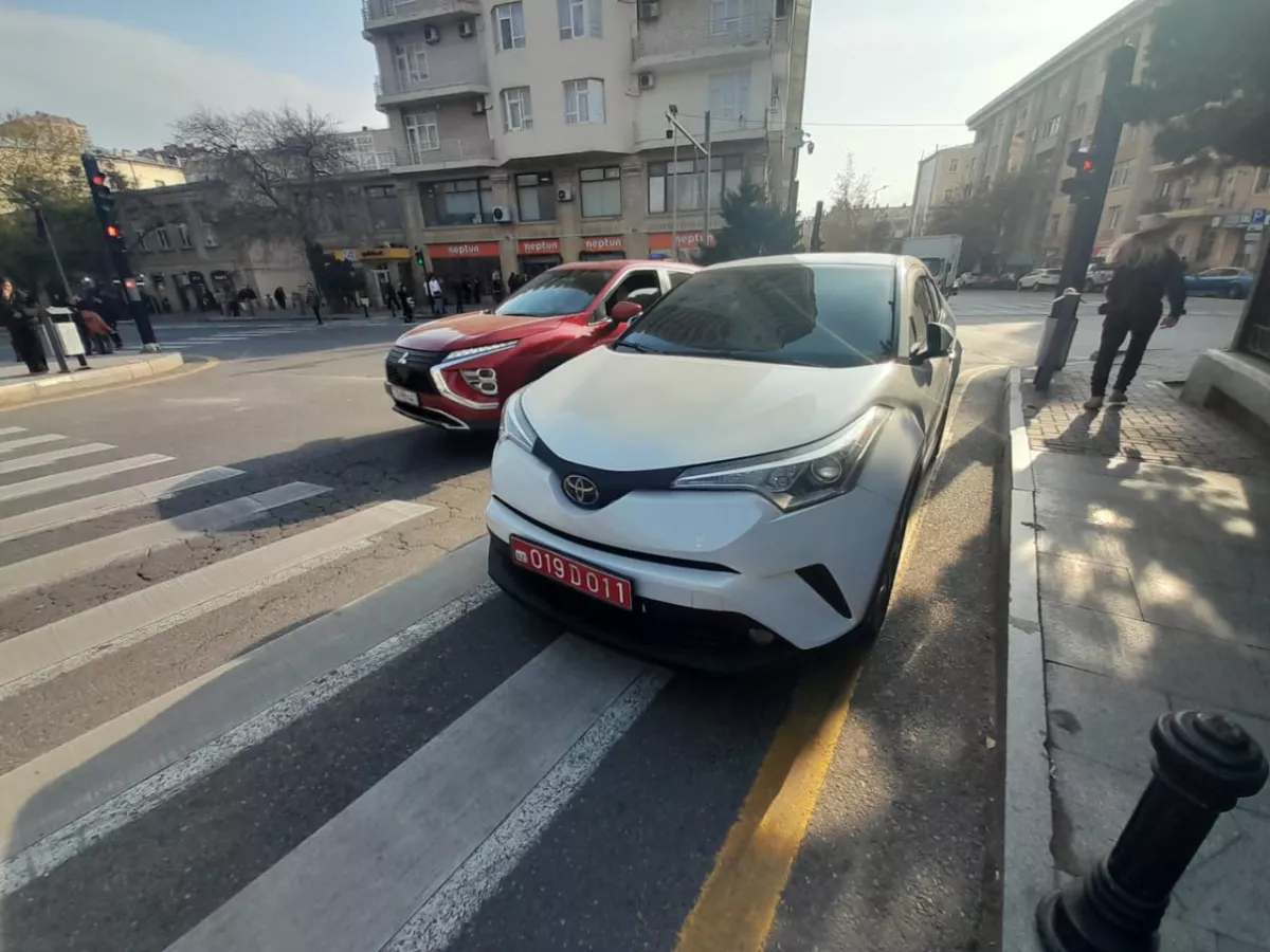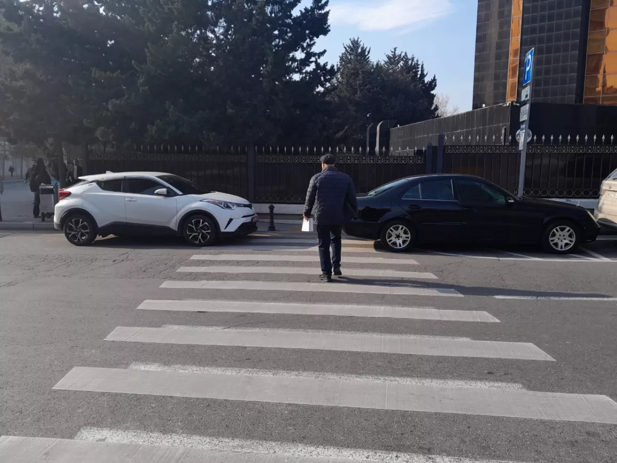 На них запечатлено, как на перекрёстке улиц Сулеймана Рустама и Шамси Бадалбейли в Насиминском районе Баку (между зданиями Центрального банка и 28 Mall) водители автомобилей марок Mercedes E-class (госномер 019-D-014) и Toyota (госномер 019-D-011) припарковали машины прямо на «зебре».