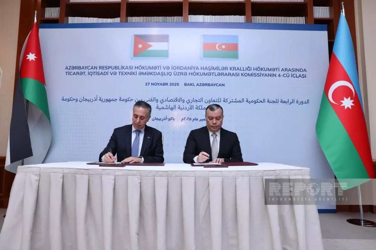 Как сообщает Report, сопредседателями — министром финансов Азербайджана Сахилем Бабаевым и министром промышленности, торговли и снабжения Иордании Ярубом Аль-Кудой были подписаны Протокол по итогам IV заседания Межправительственной комиссии, а также Исполнительная программа сотрудничества в сферах науки и образования, культуры и искусства, молодежи и спорта, археологии, здравоохранения и медиа на 2025-2027 годы.