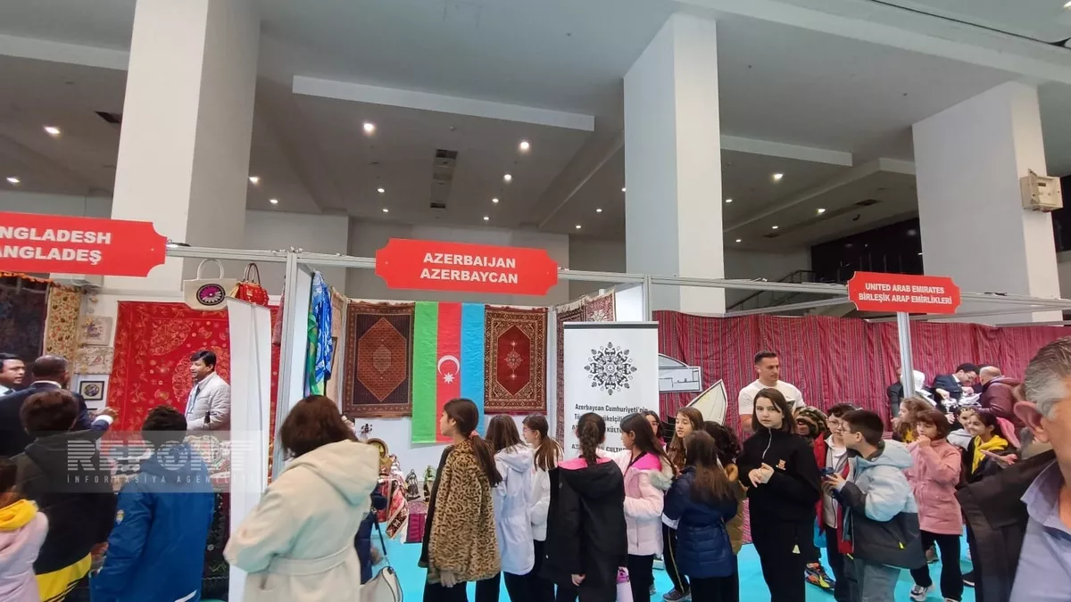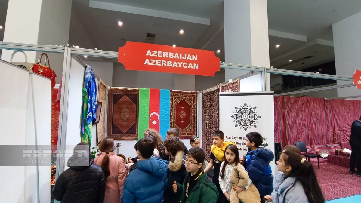 Культурный центр при посольстве Азербайджана в братской стране представил на выставке наш национальный стенд, на котором посетителям были представлены азербайджанские ковры, сувениры, кялагаи (традиционные шелковые платки), образцы национальной культуры.