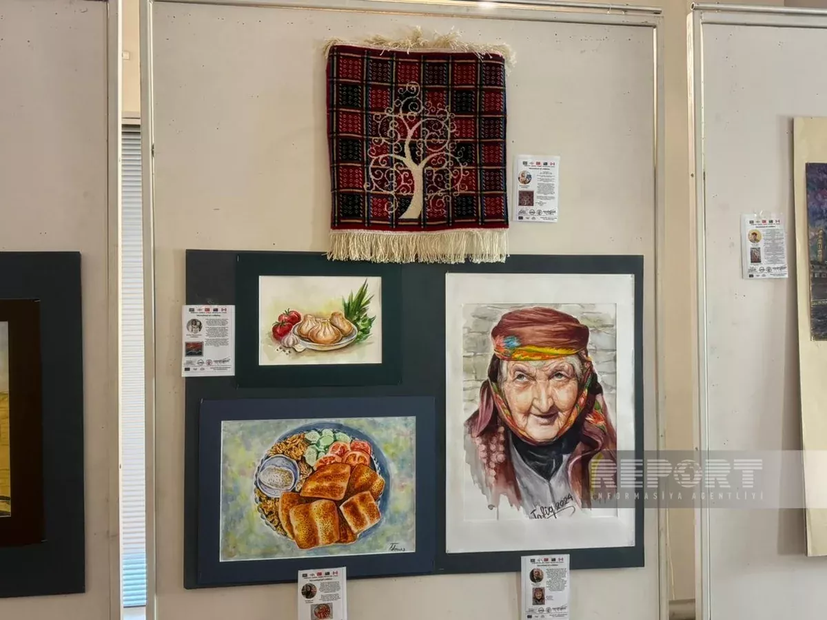 Куратор от Азербайджана Эльминаз Гахраманова сообщила, что страну на выставке представляют в общей сложности 43 художника. По ее словам, представленные произведения выполнены в различных техниках - ковроткачество, акварель, гобелен и масляная живопись.