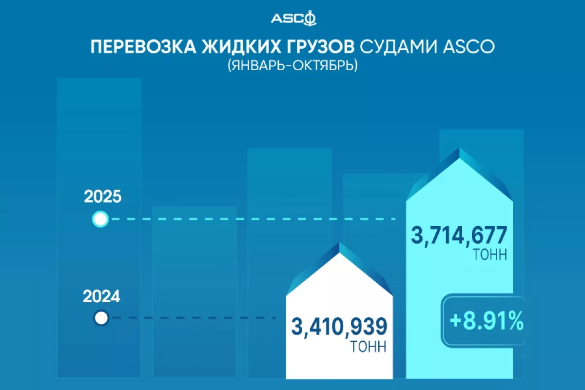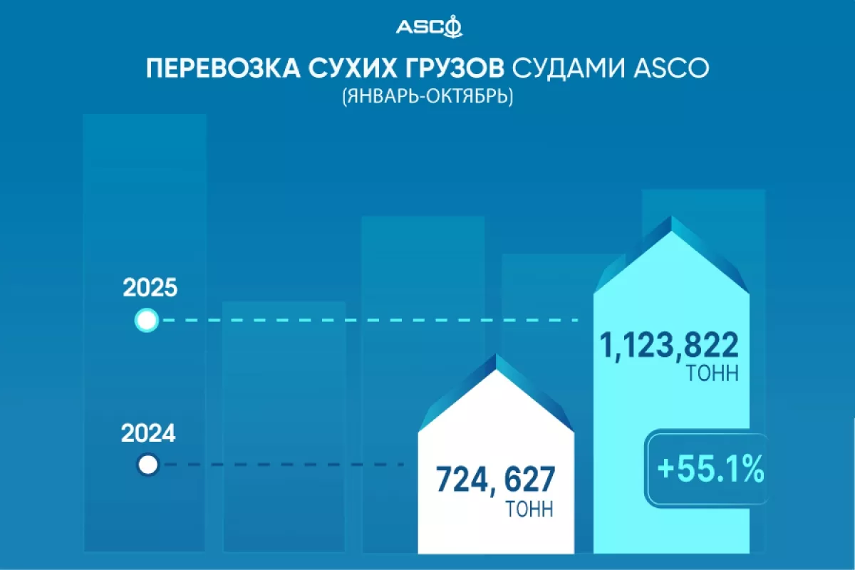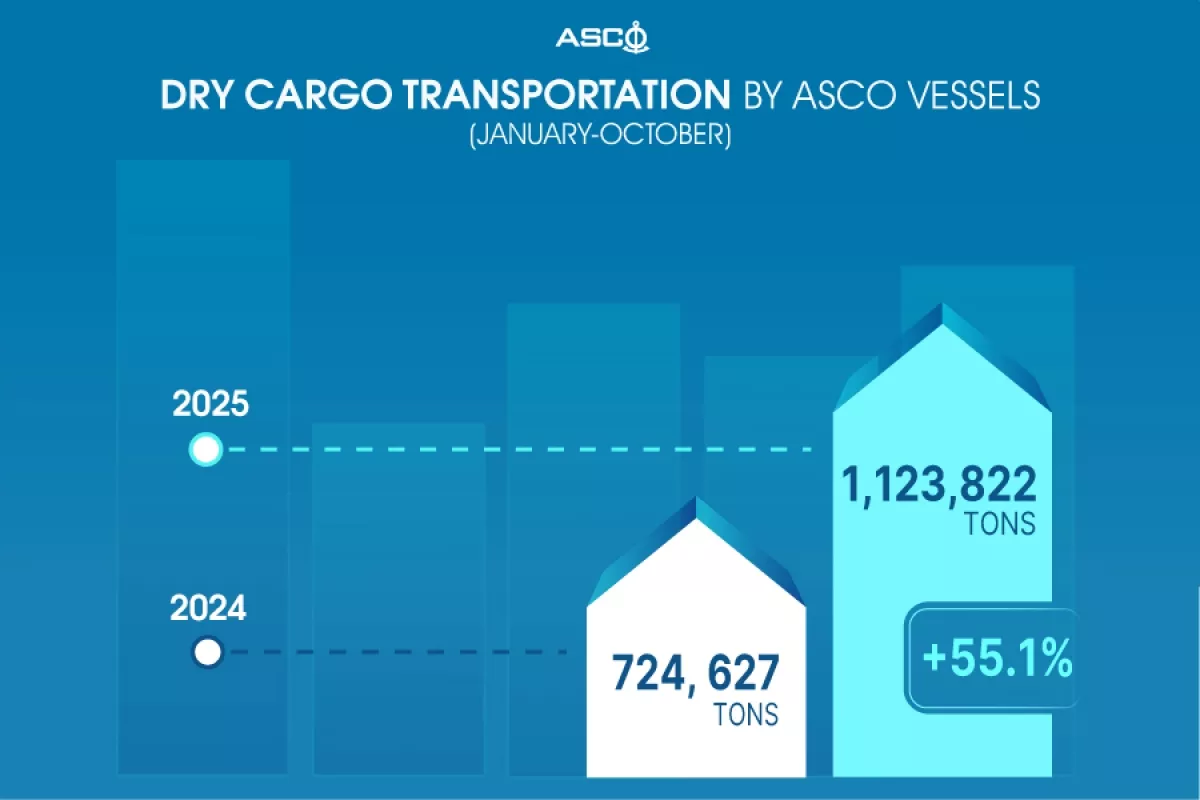 В целом общий объем перевозки жидких и сухих грузов ASCO вырос примерно на 17 процентов по сравнению с аналогичным периодом 2024 года.
