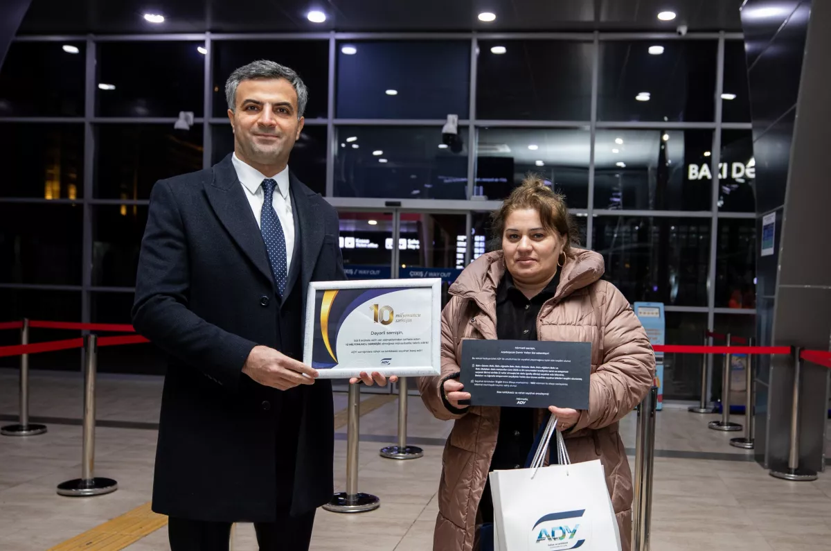 10-миллионным пассажиром стала Хураман Лайигова. Ей вручили памятные подарки.